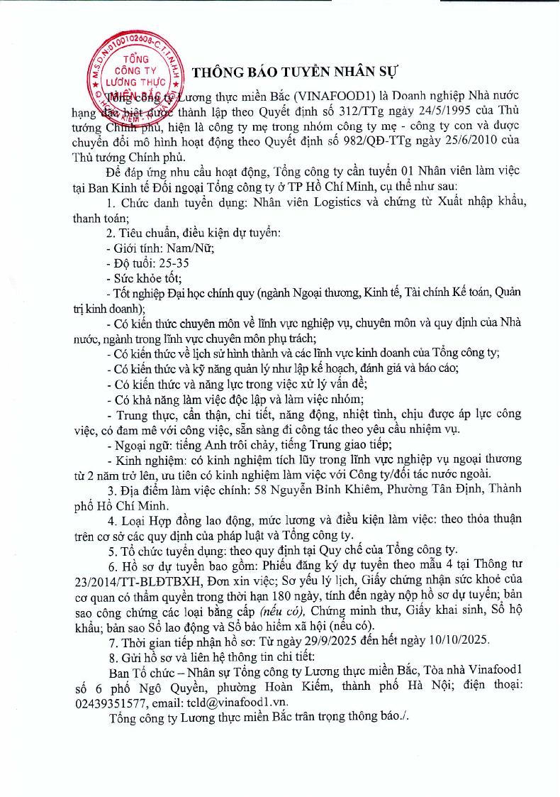 TCTLTMB: Thông báo tuyển nhân sự